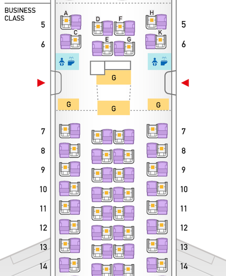 ANAが誇るスタッガードシートです。スタッガードの特徴は交互に並んでいること。千鳥柄を意味するStaggeredの名を冠しているのはそのためです。上から見るとわかりやすい……