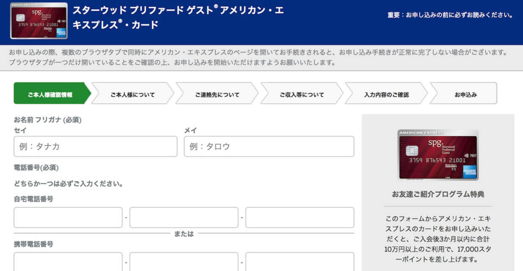 ステップ②:会員紹介URLからSPGアメックス・カードに申し込む